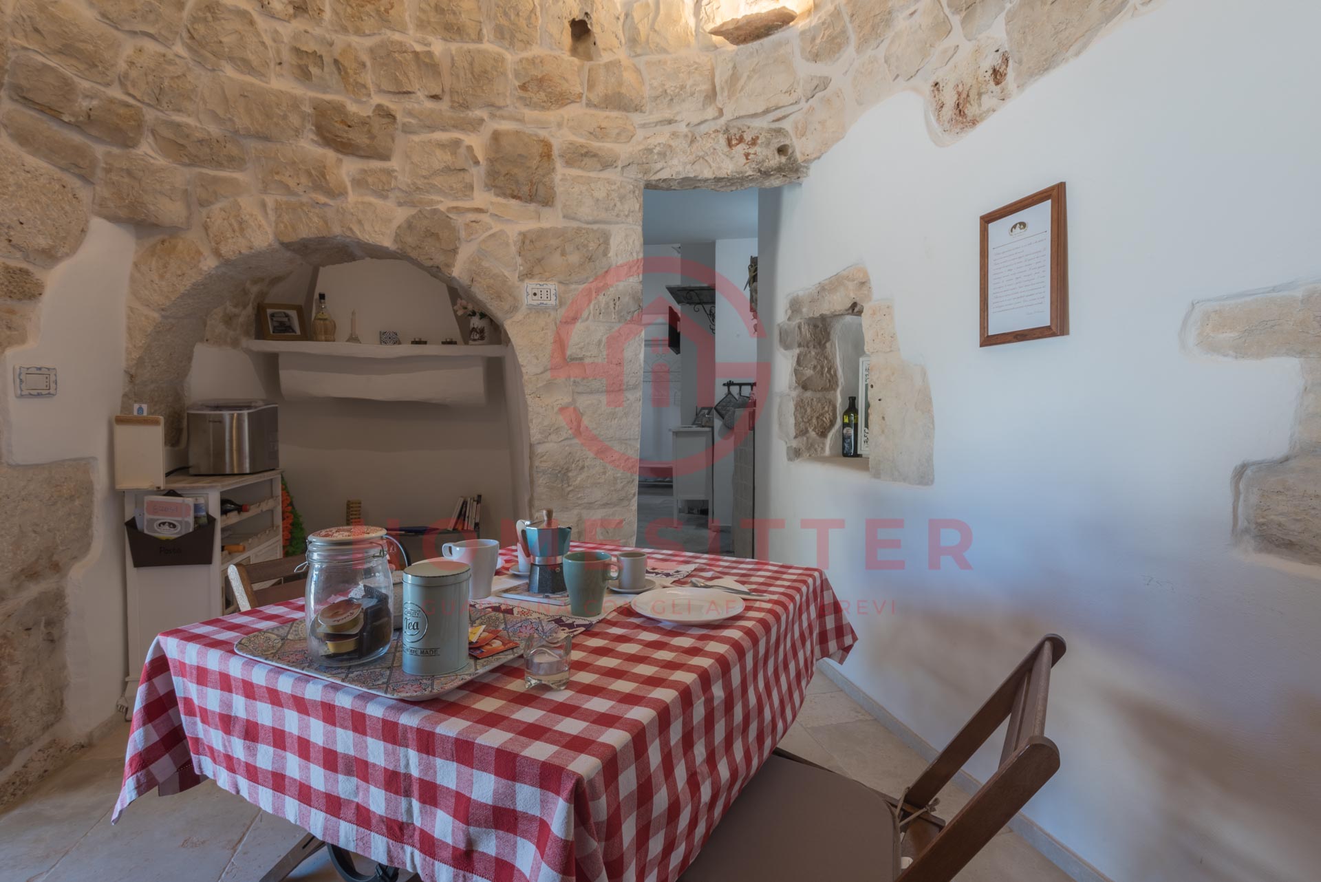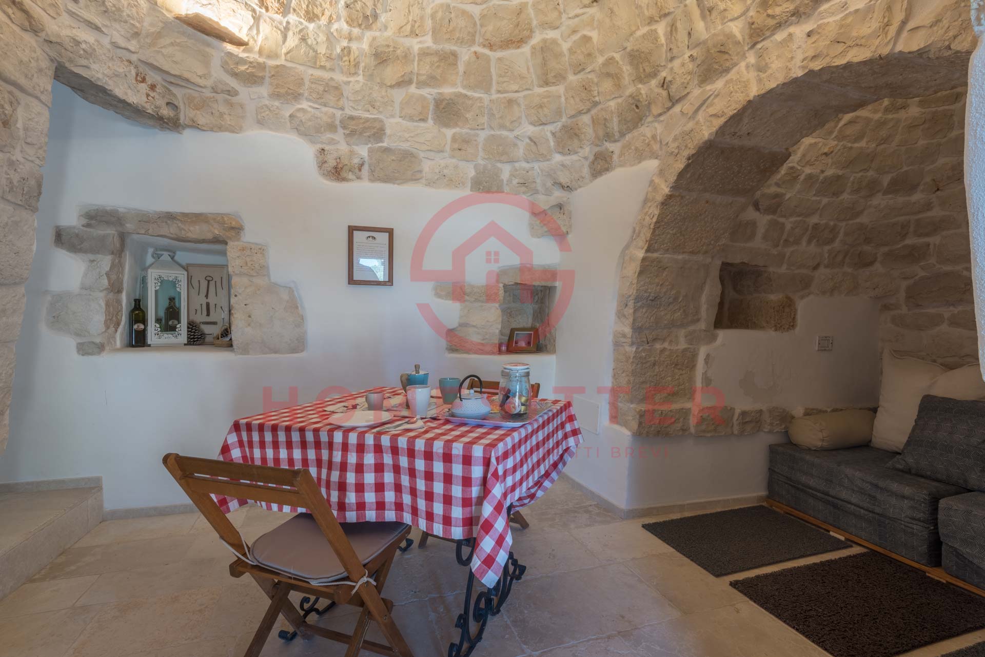 Ristrutturato di recente, è fornito dei moderni comfort. Il trullo è a tre coni, di cui quello principale è adibito a ingresso e zona pranzo.