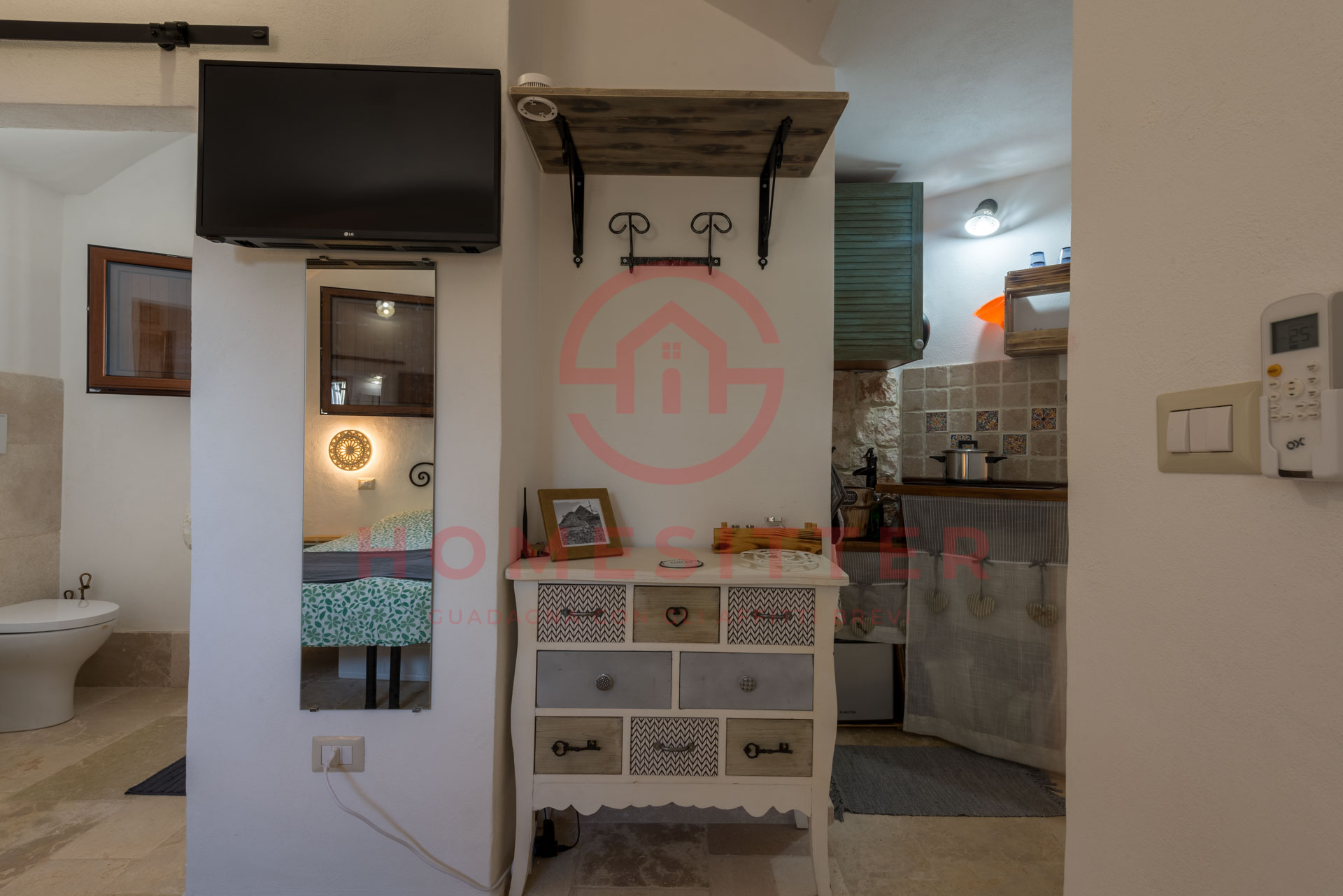 Consigliato per un soggiorno di coppia, e ad esclusiva disponibilità degli ospiti, è possibile anche pernottare in quattro grazie al divano letto situato nell’alcova.